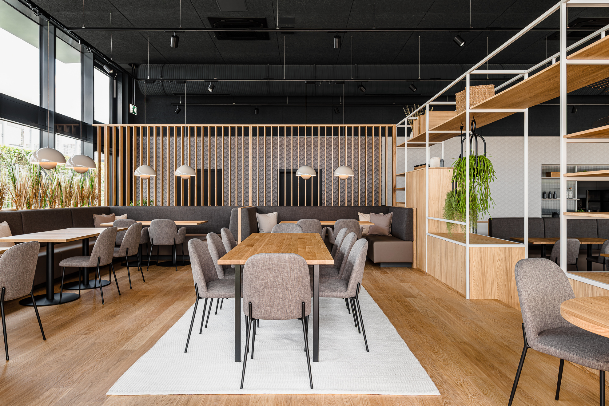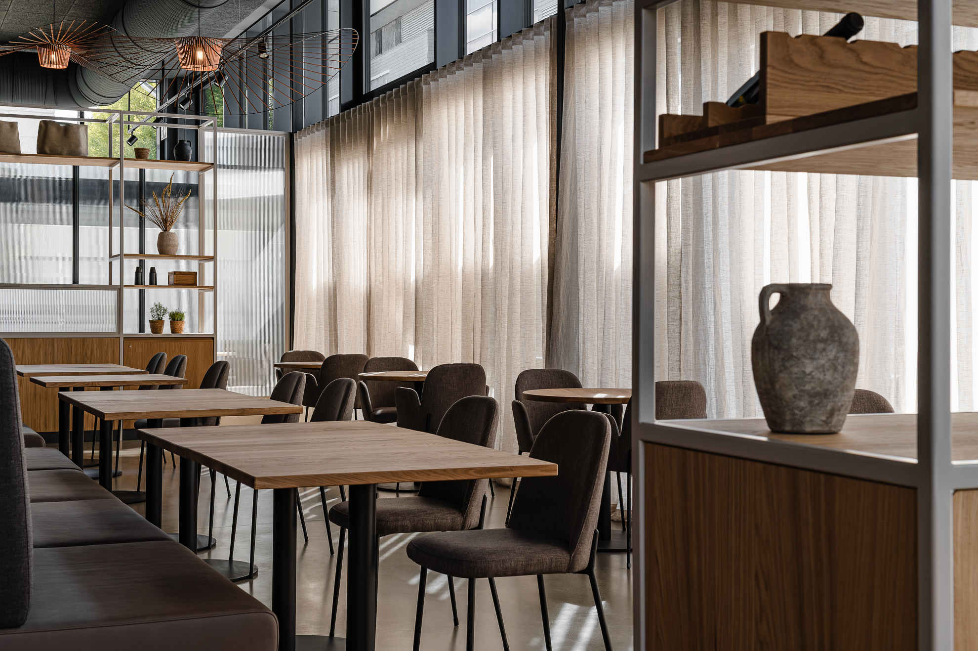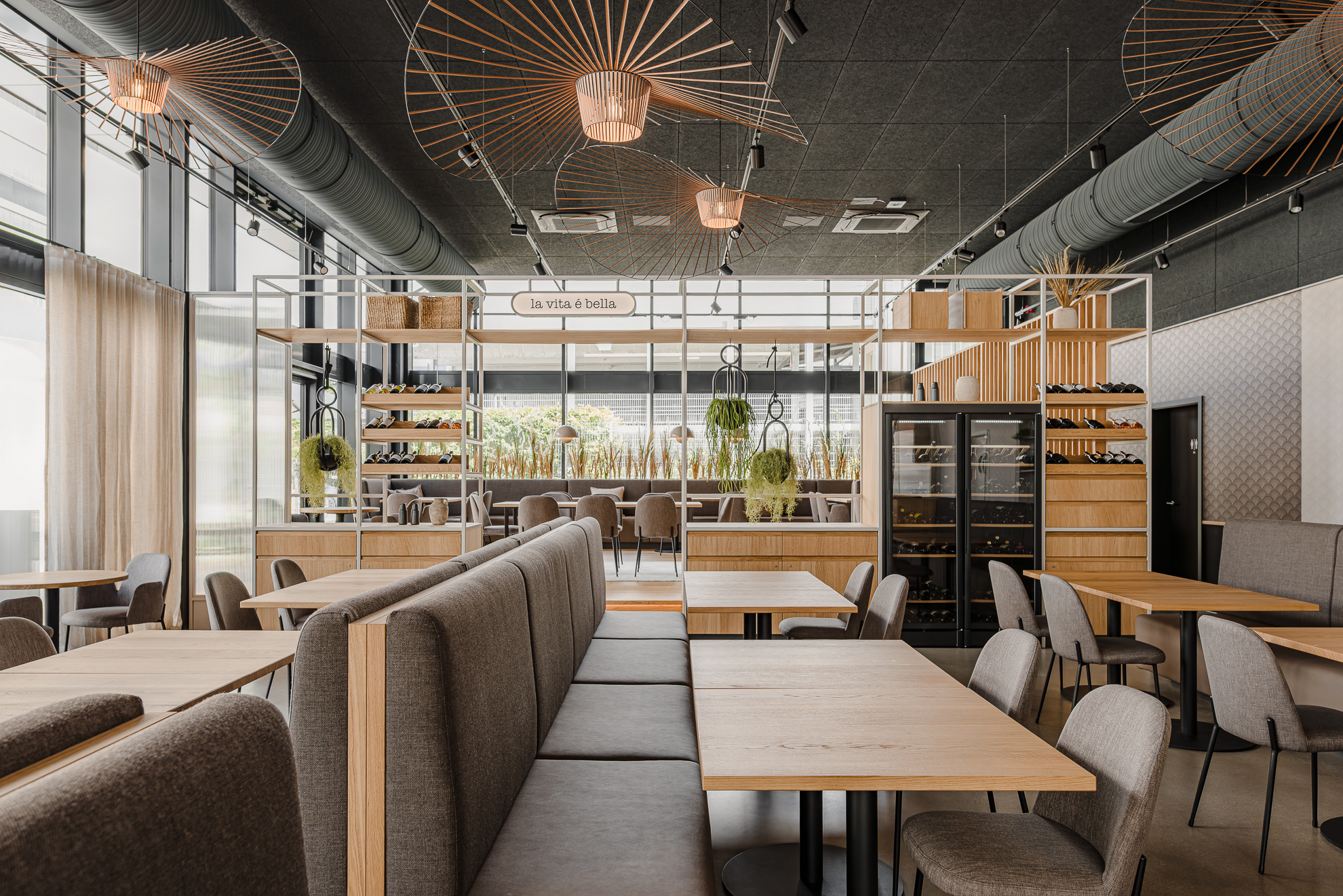 EVA wurde mit der Vision geschaffen, italienische Kulinarik in einem gemütlichen Ambiente mit klaren Linien und einem Augenzwinkern zu verbinden. Ein Ort, an dem Genuss und Design nahtlos aufeinandertreffen. In dem neu gebauten, zweigeschossigen Gebäude in Dreieich-Sprendlingen, finden sich auf den 405qm des Erdgeschosses der Gastraum, Küche sowie Nebenräume des italienischen Konzepts wieder. Das Restaurant bietet Möglichkeiten für ein schnelles Frühstück, Mittagsmenü und À-la-carte-Angebote mit Schwerpunkt auf hausgemachter Pasta und Pizza.